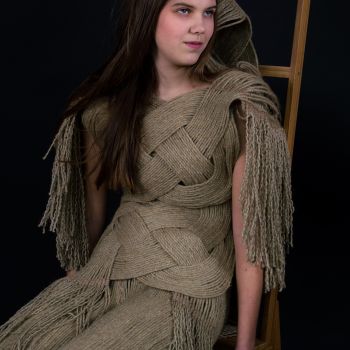 Creatie van henneptouw, geknoopt en geregen. Fotografie Tabitha van Duin, model Tania Waiboer.